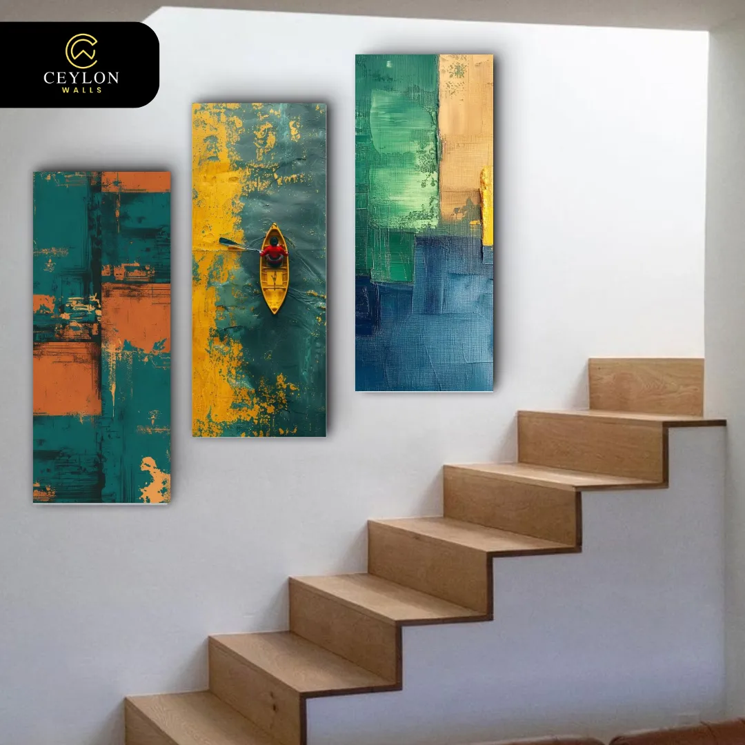 Infuse your space with color and texture using this Abstract Turquoise River set. The vertical flow of the design draws the eye upward, perfect for stairwells. A vibrant addition to our wall arts to buy category.