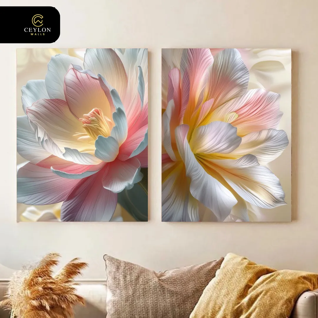 A celebration of color and light, this set showcases macro-style floral details with an iridescent finish. The blend of pinks and soft blues creates a high-energy yet sophisticated look.