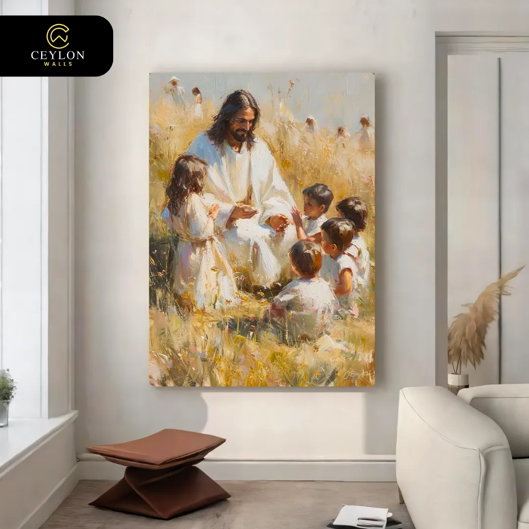 Inspired by the verse “Let the little children come to me,” this bright and happy painting radiates love, patience, and innocence.